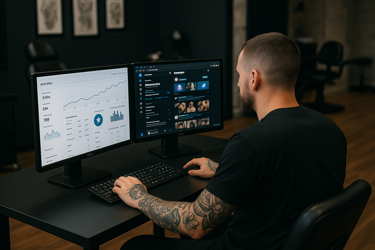 Inkcom gère tes réseaux, pubs et visuels pour que tu te concentres sur l’essentiel : tatouer.